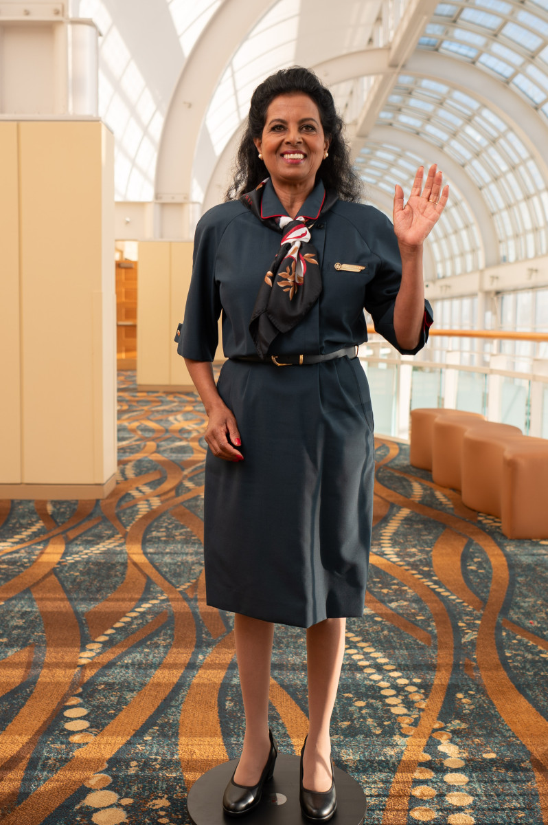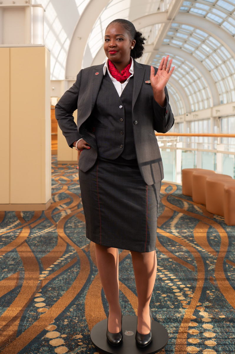 And finally, our current uniform! Imagined by Canadian designer Christopher Bates, it was recognized with a few awards including the NAUMD 2018 Best of the Best Award for Outstanding Uniform Design and the PCIAW 2018 Award for Outstanding Corporate Design. How was it for Veronique to represent her own uniform in the fashion show? “Walking to the stage representing the actual Air Canada uniform, it was an honour for me. This was a wonderful and fulfilling experience.”