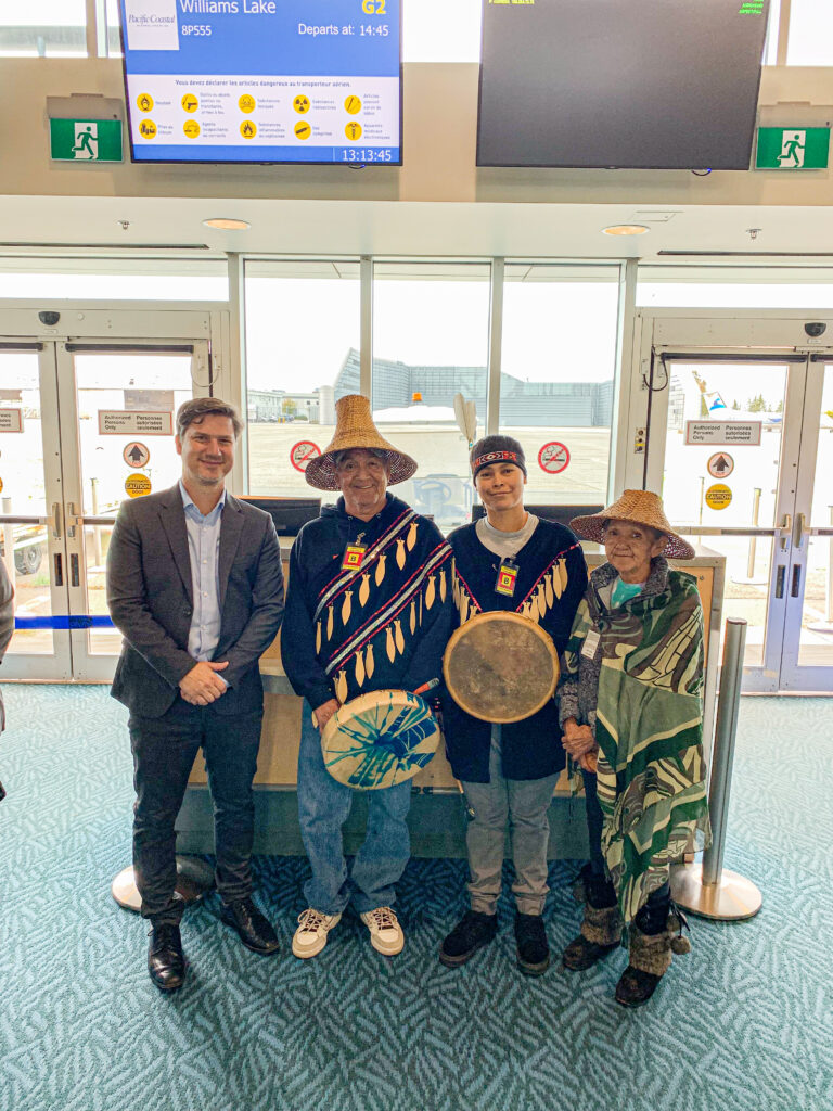 At the Nanaimo Airport event, Johnathan Richardson, VP, Customer & Commercial, took center stage, alongside airport leads Dave Devana, Nanaimo Airport CEO & President and Keith Granbois, Chief Financial Officer & VP, Business Development. The festivities included a water salute for the aircraft, a special wine and cheese event, a ribbon-cutting ceremony, speeches, a gift exchange, distribution of branded cookies and swag to passengers, and a First Nation welcoming by the Stz’uminus First Nation Chief John Elliott.