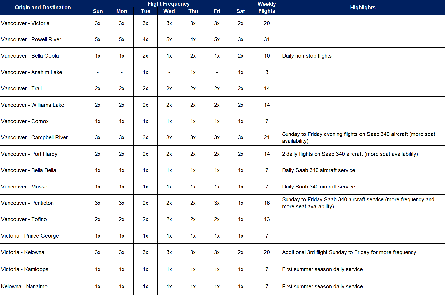 “We are thrilled to announce these two new routes and add Nanaimo as a new destination to our route network,” said Johnathan Richardson, VP of Customer & Commercial. “Our unique Nanaimo – Vancouver South Terminal service will provide seamless connections to other destinations in our network and offer customers a new option of travelling with ease from the South Terminal, while our Nanaimo – Kelowna service will provide the only non-stop flight option enabling customers to travel between these communities in just over an hour.”